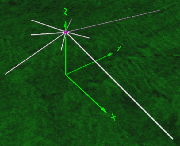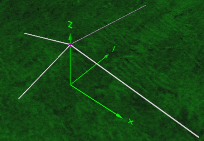 A dipole (or doublet) is the simplest, but they needs matching, so I looked at a few inverted-V options. Turning an inverted-V to the horizonal works quite well, with 120...90 degrees between the two wires. A simple horizontal V for 40m & 20m can be arranged as a cross, like this:
