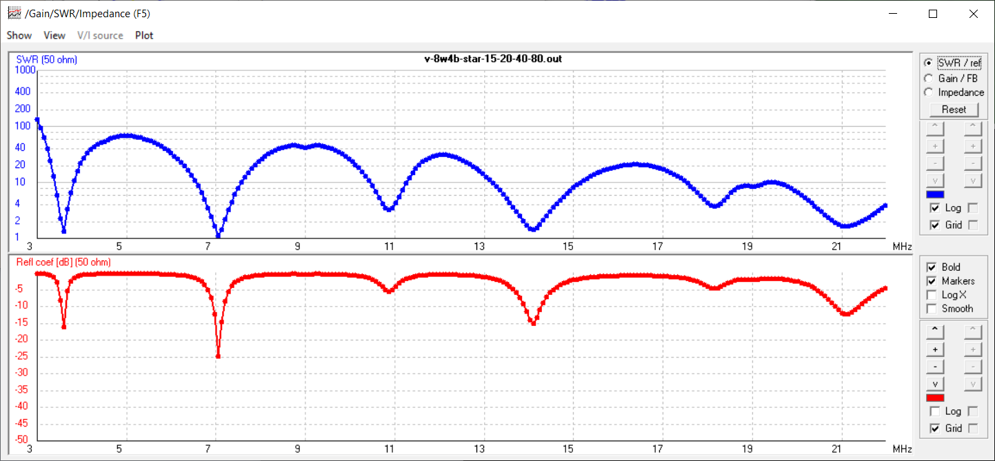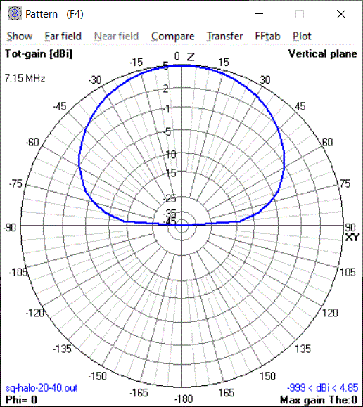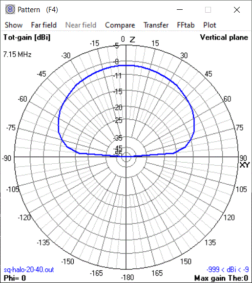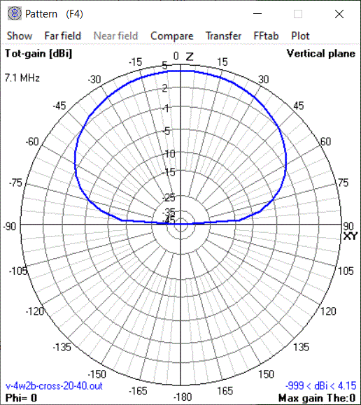 But, getting a good SWR, and good radiation are two different things. Looking at the model, with it this near to the ground, the radiation is mainly upwards, and the ground is absorbing a lot of the signal.