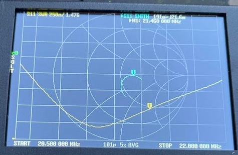 I was testing this on a wooden pole, with the ends tied to nylon cord going to whatever was handy. So the centre was about 2.5m from the ground, and the ends were about 1.5m. Raising it higher is likely to change these results, but the SWR is flat enough that even with it raised up, the whole band will probably be under 2.5:1.